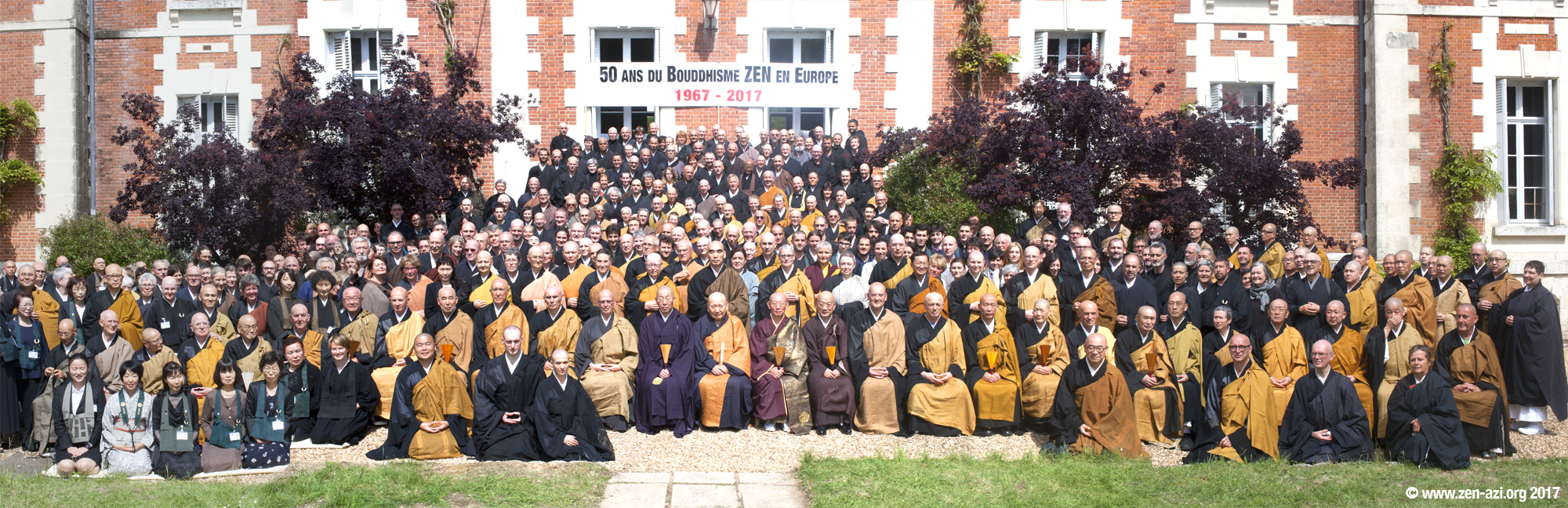 450 personnes étaient présentes, dont les enseignants européens – disciples de maître Deshimaru et autres –, une délégation japonaise de hauts responsables des temples de Eiheiji et Sojiji, ainsi que les responsables du zen Sôtô en Europe, au Japon, aux USA, en Amérique du Sud…