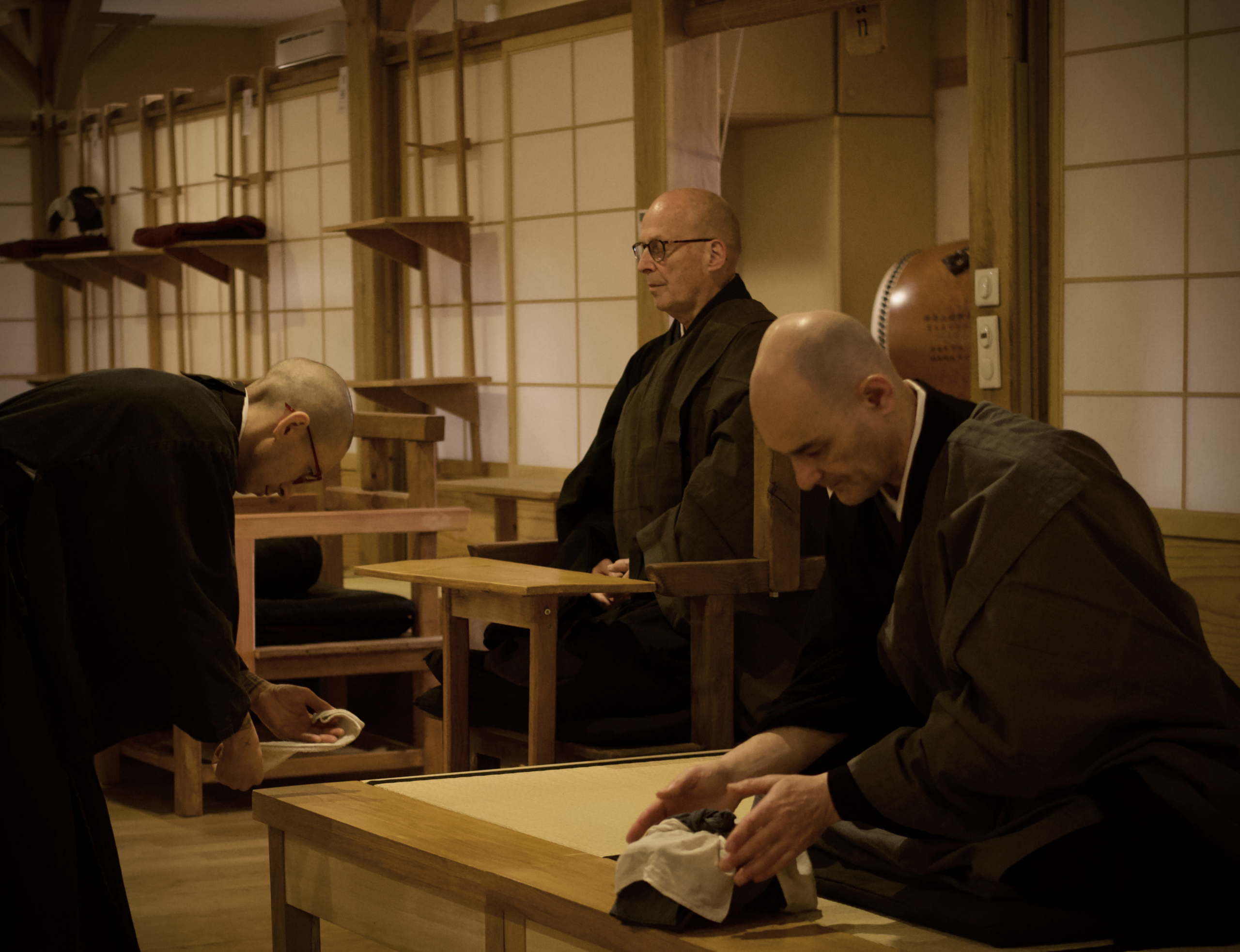 Comme on n’est pas toujours assis en zazen, on reconduit l’esprit de zazen dans les activités de la vie quotidienne : le samu, l’activité désintéressée effectuée dans les tâches quotidiennes du monastère : cuisine, nettoyage, potager, vaisselle…